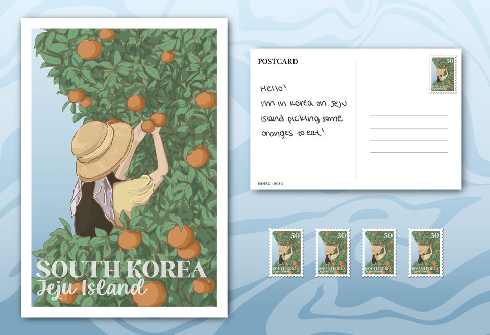 Students will choose a location to create 1 illustration that works as a postage stamp and postcard. The location they choose can be a landmark, famous person, animal, food, or state flower. They must choose something that represents the location well and keep in mind how it reads on a small postage stamp. Each student will need to have their presentation on a digital mockup, print postage sticker and postcard for presentation.